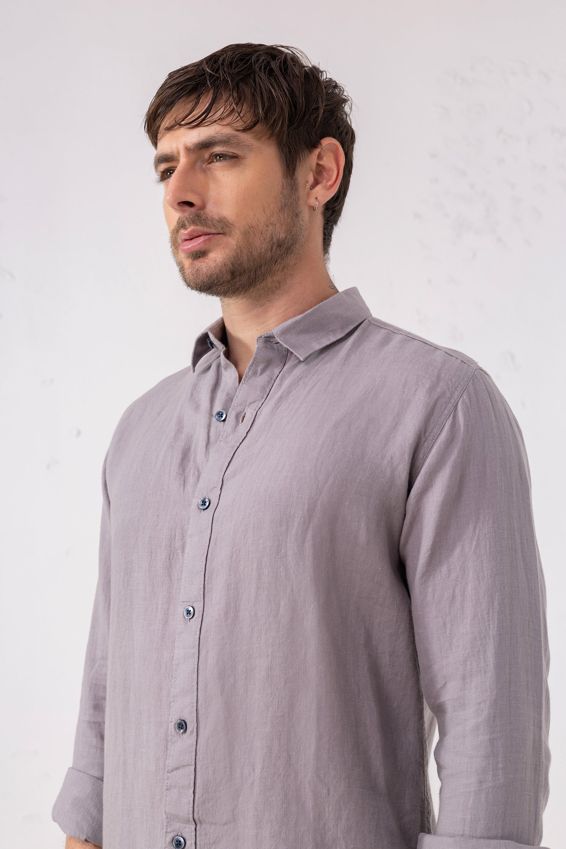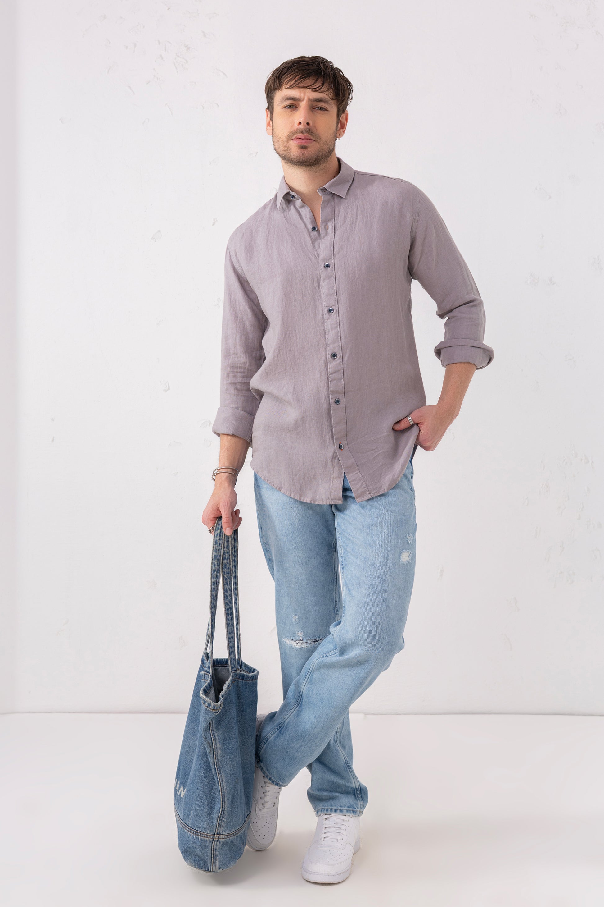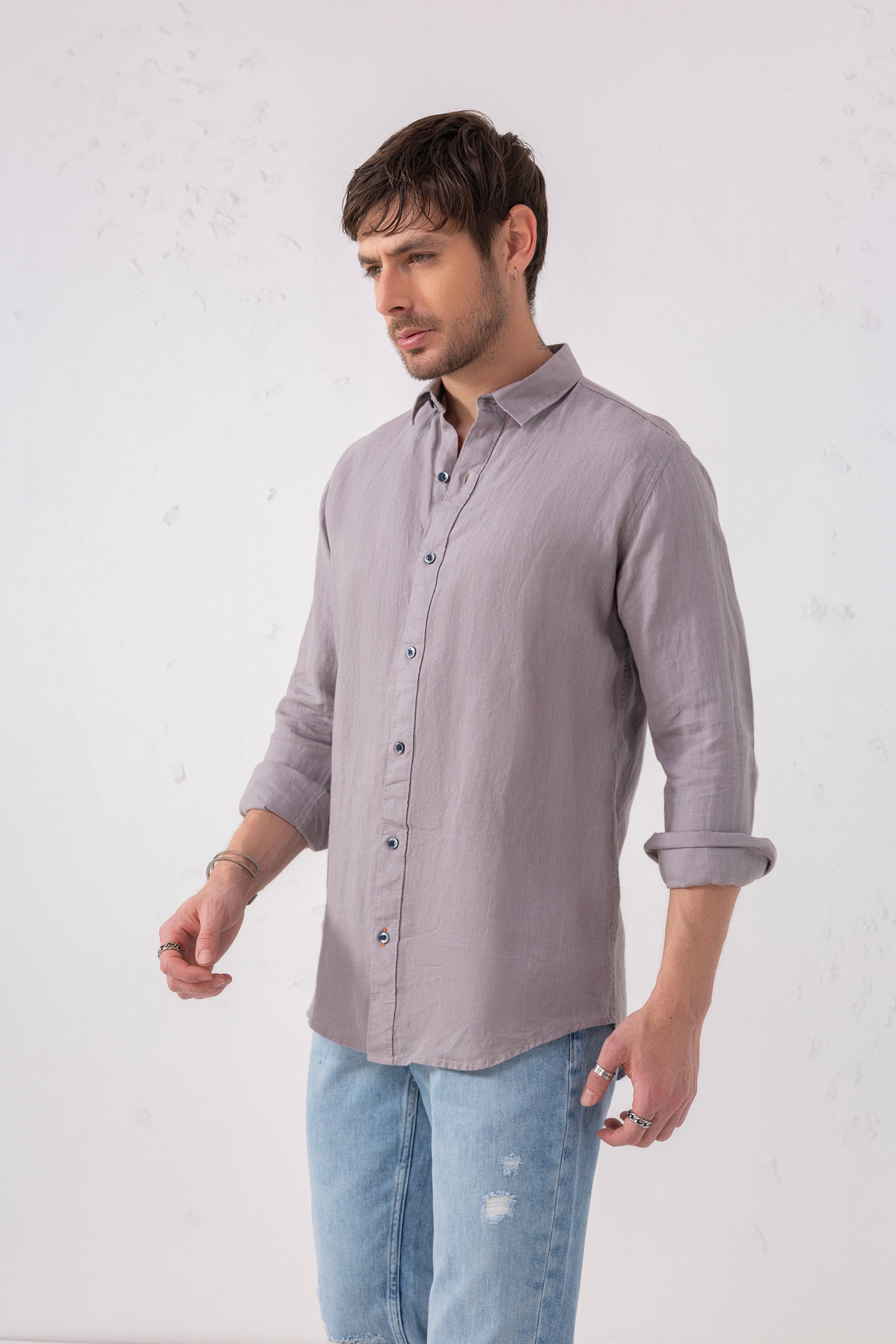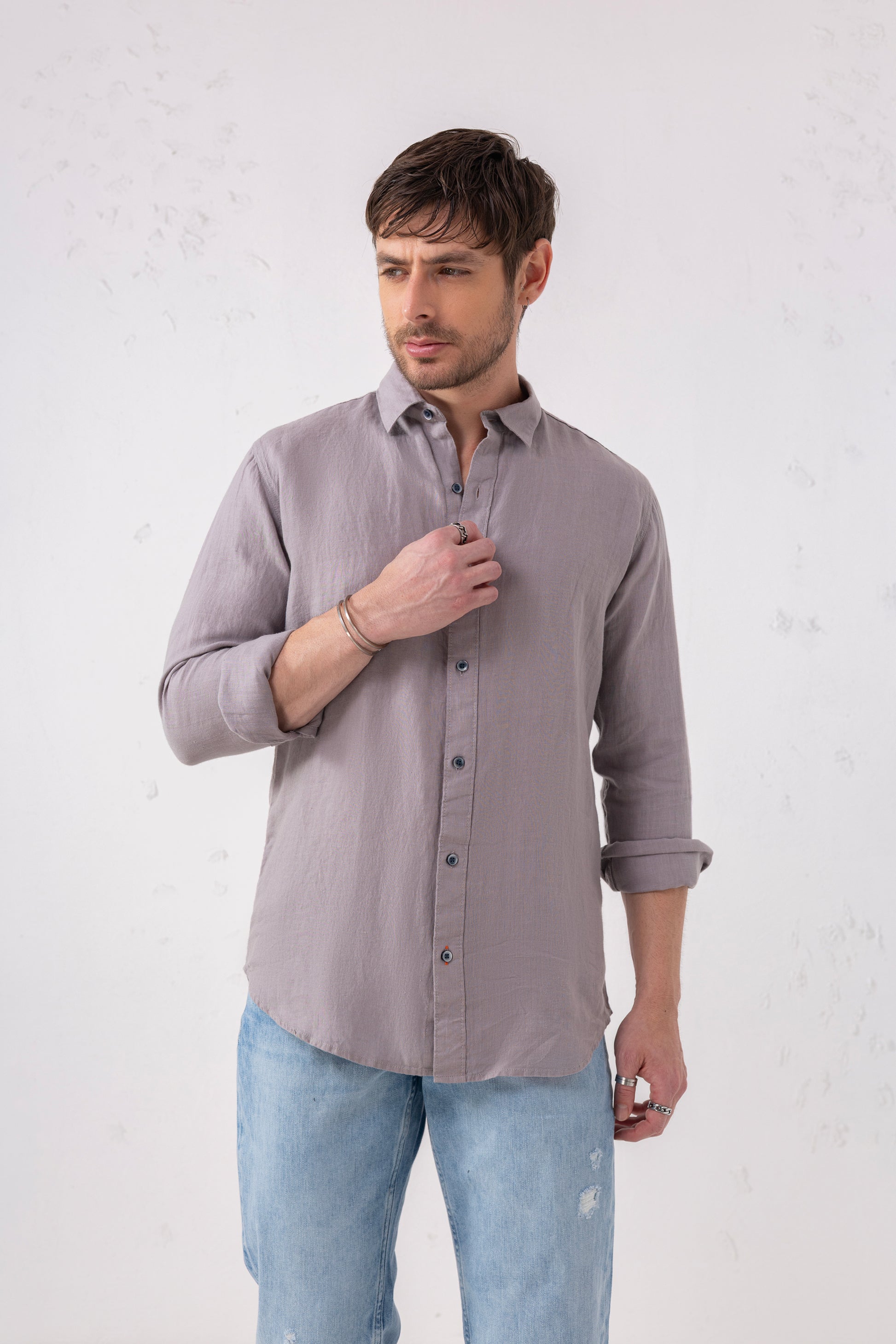 Pure Linen Shirt – Full Sleeve | Solid Color Elegance