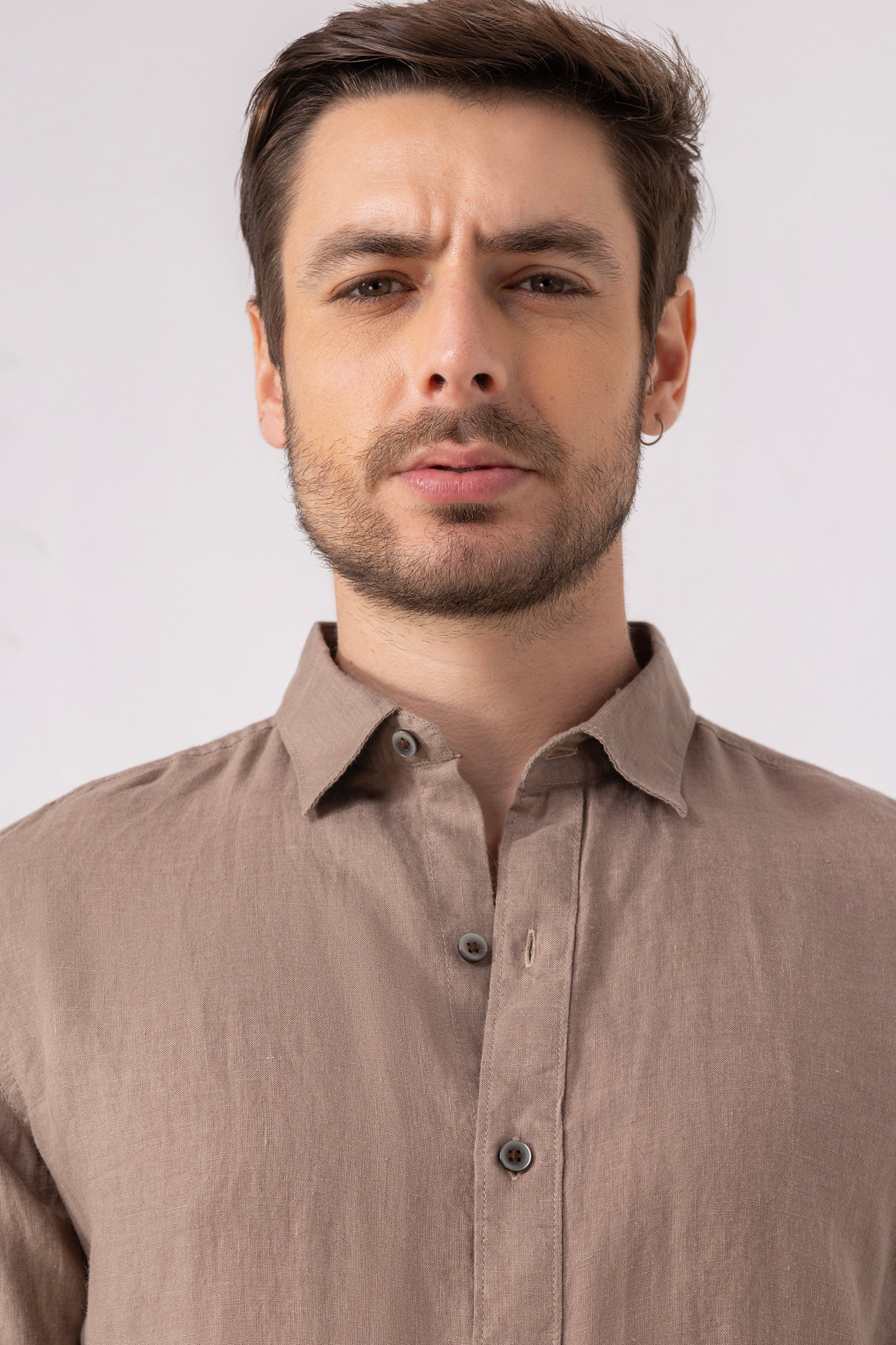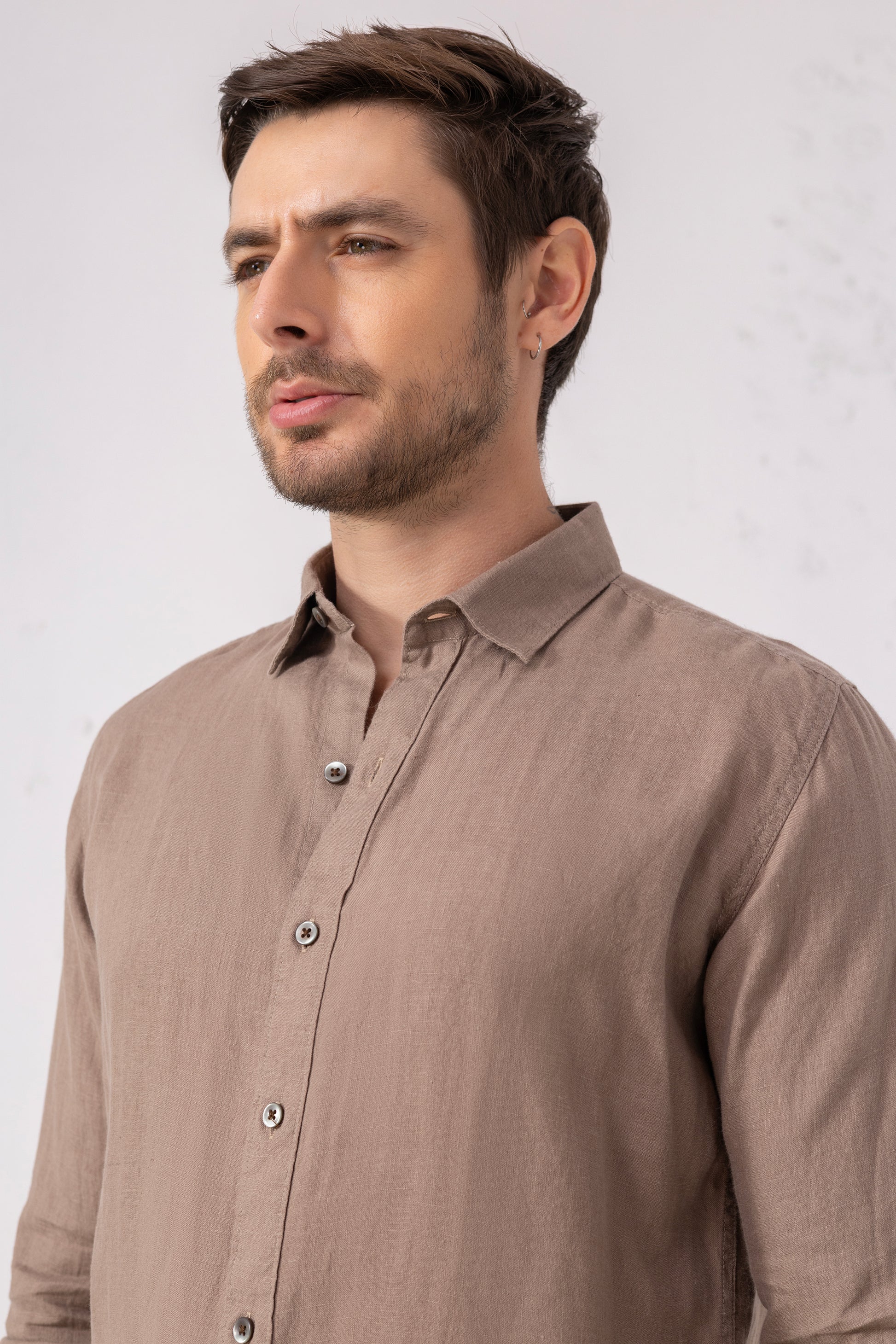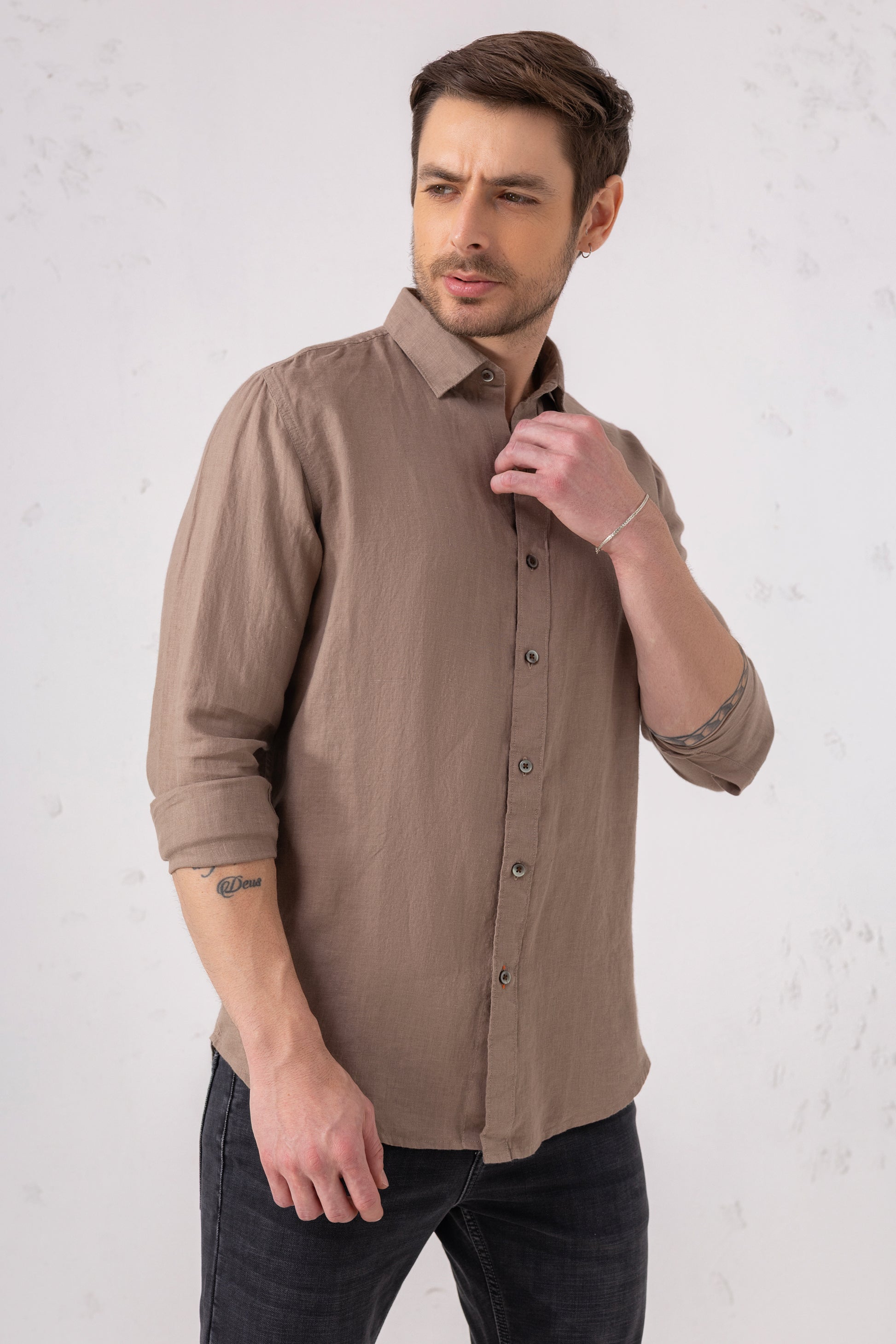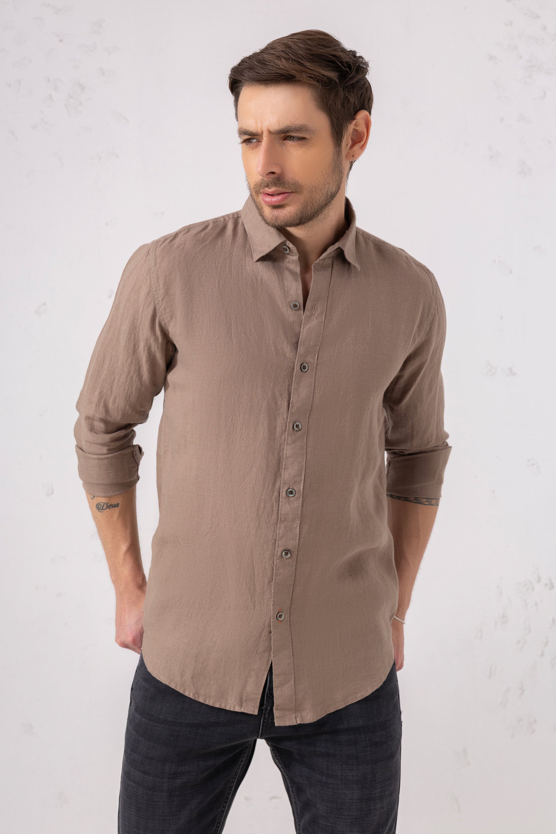 Pair this earthy-toned linen shirt with beige chinos for office-smart style or with dark denim for casual outings. Roll up the sleeves for a relaxed brunch look or layer under a blazer for a refined semi-formal ensemble.