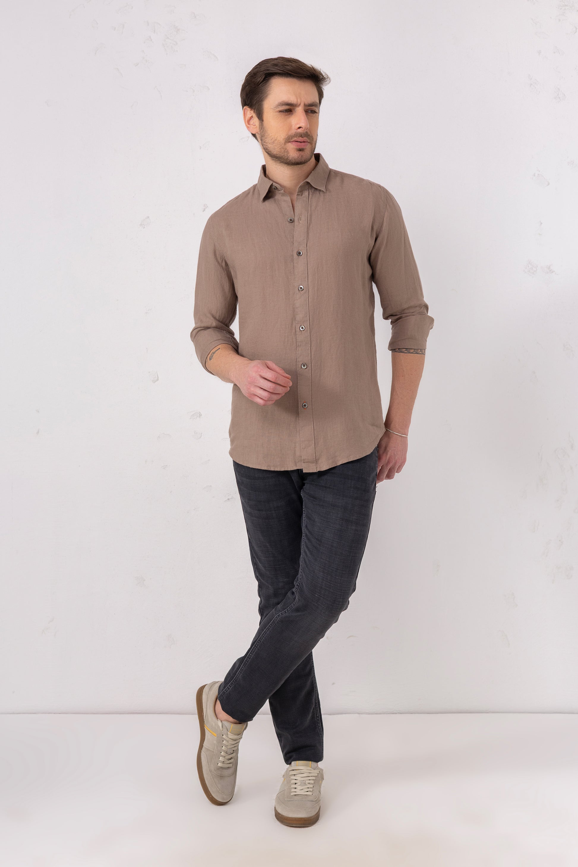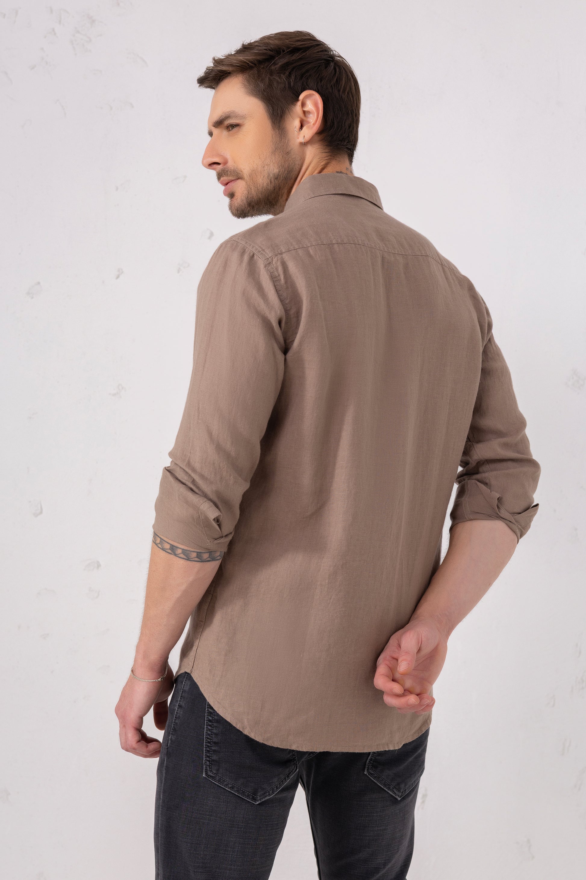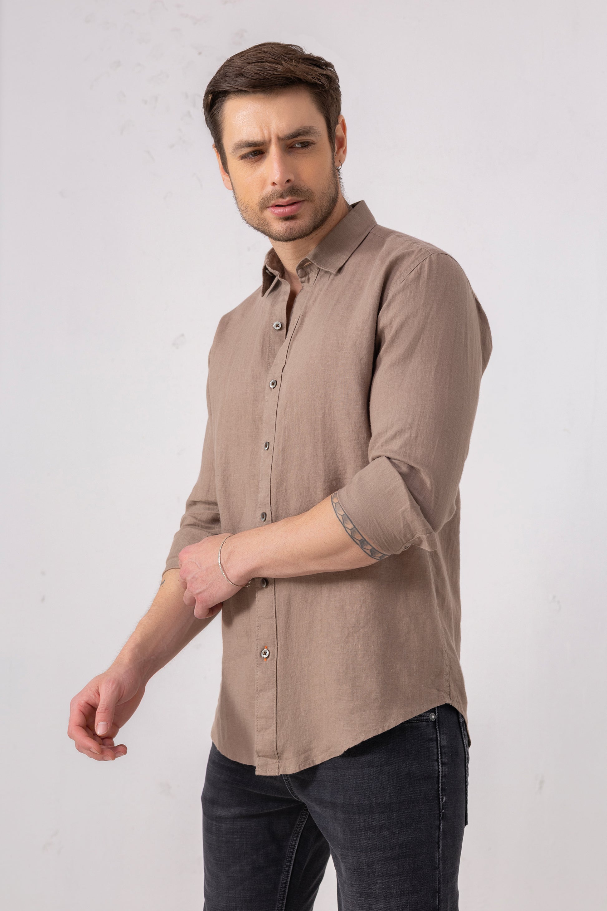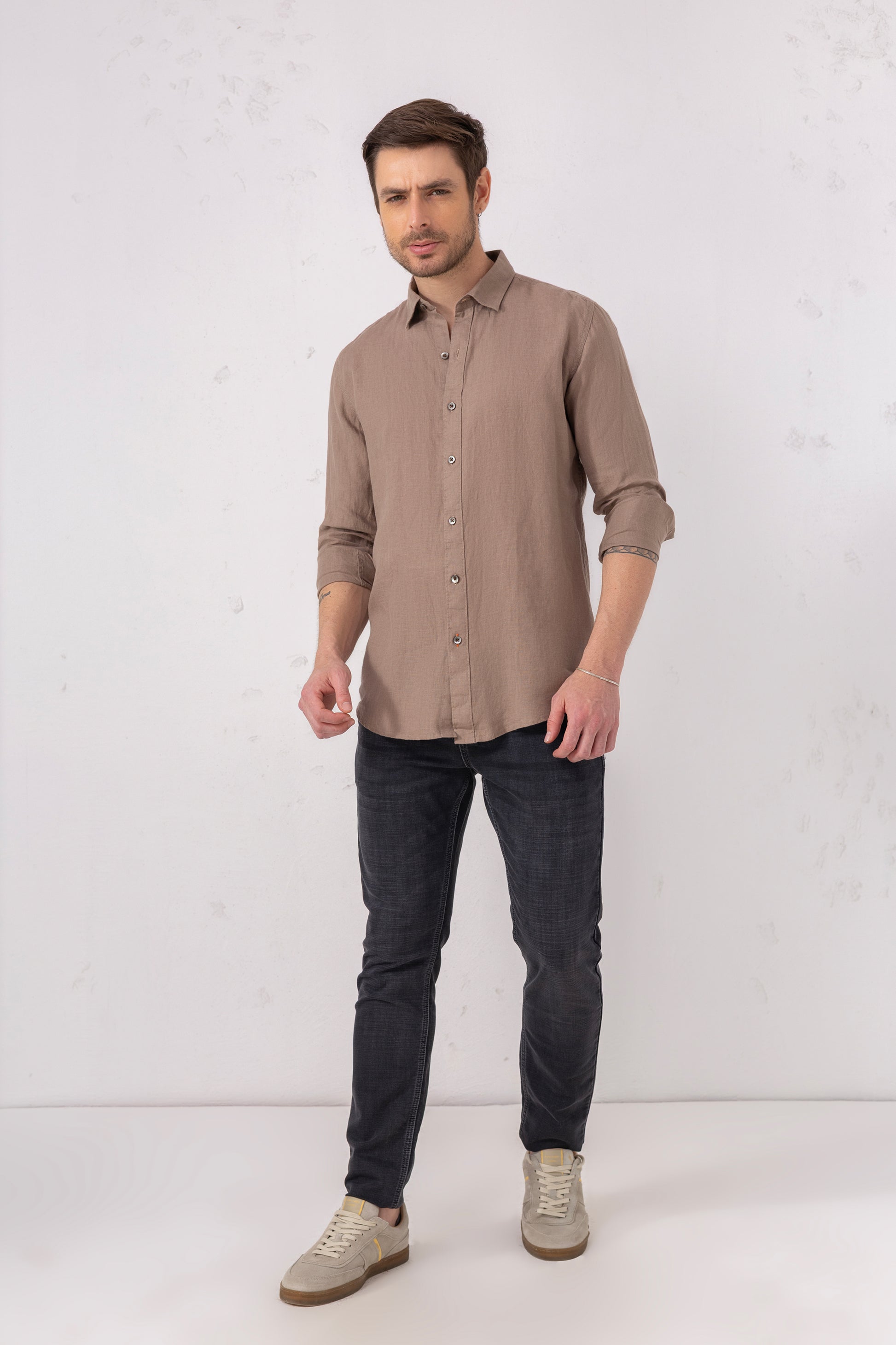 Pair this earthy-toned linen shirt with beige chinos for office-smart style or with dark denim for casual outings. Roll up the sleeves for a relaxed brunch look or layer under a blazer for a refined semi-formal ensemble.