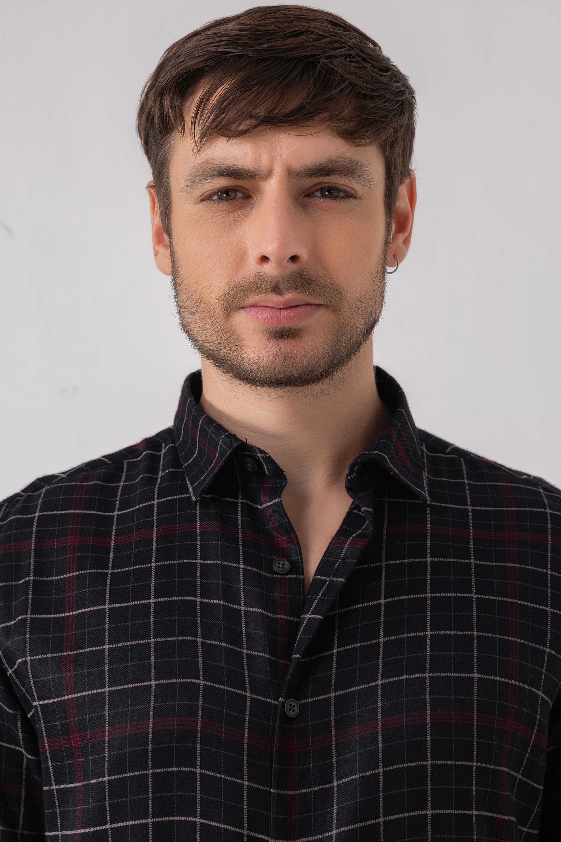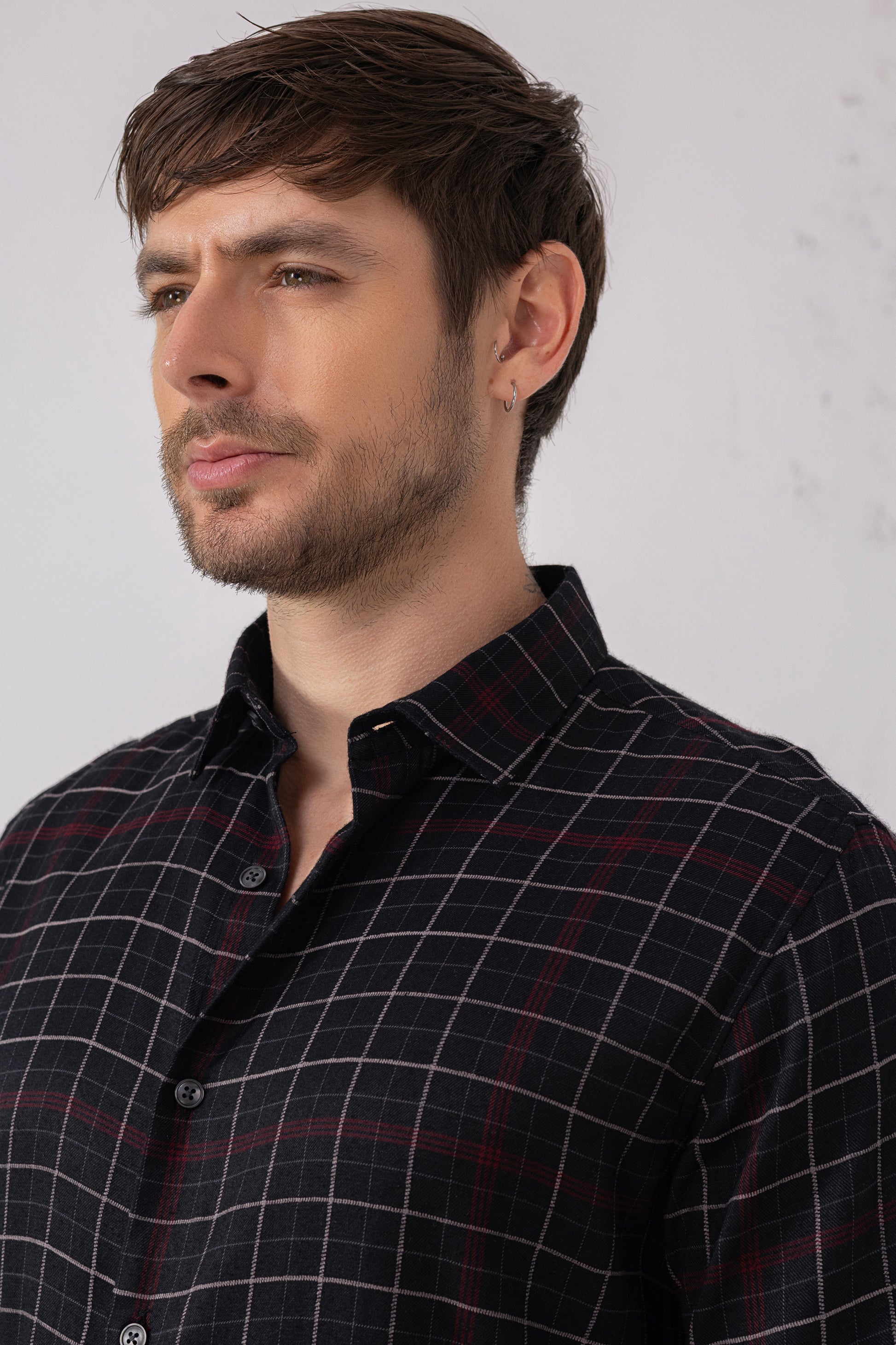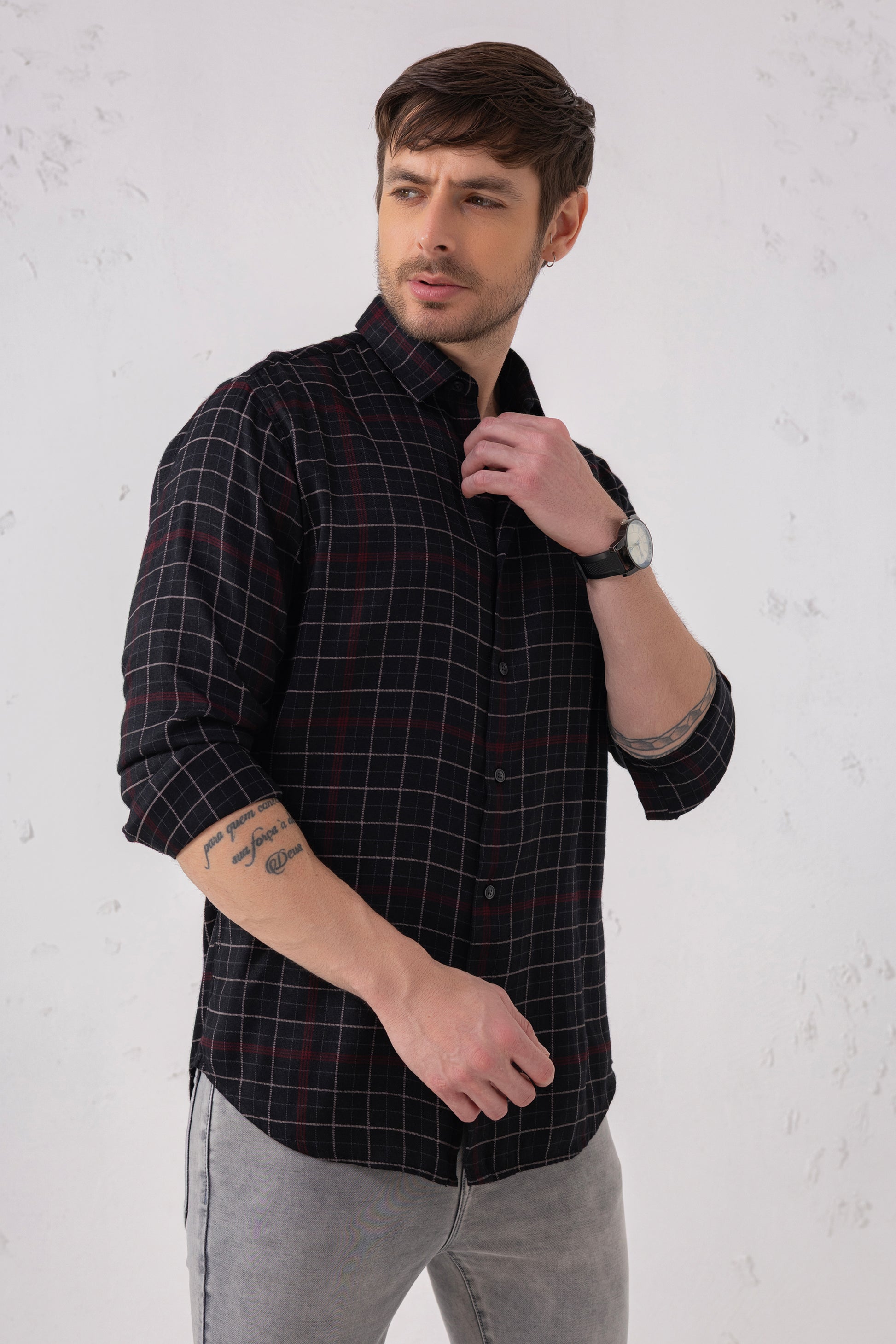 Precision meets personality in this black grid shirt. A confident staple that elevates everyday minimalism.