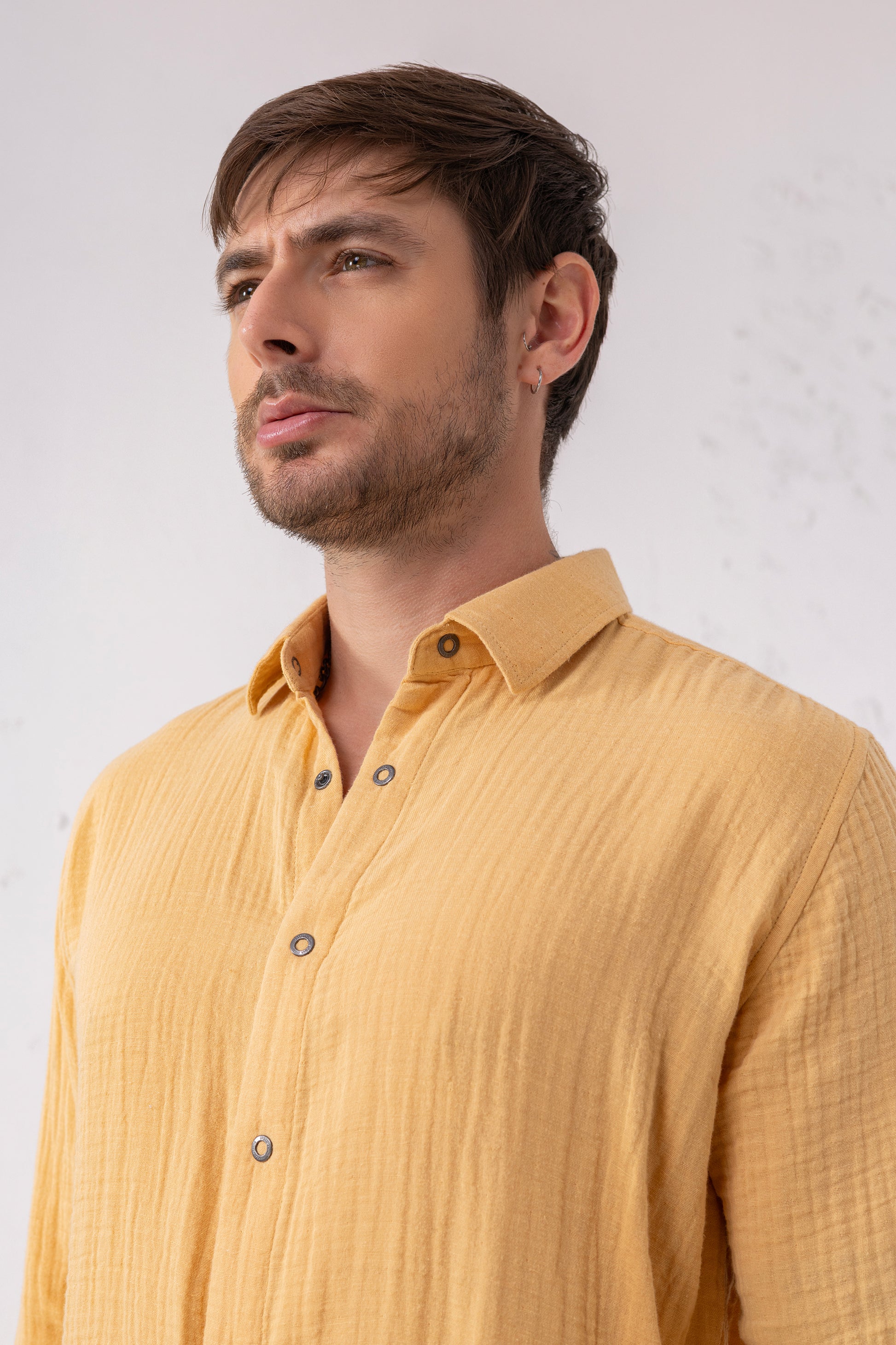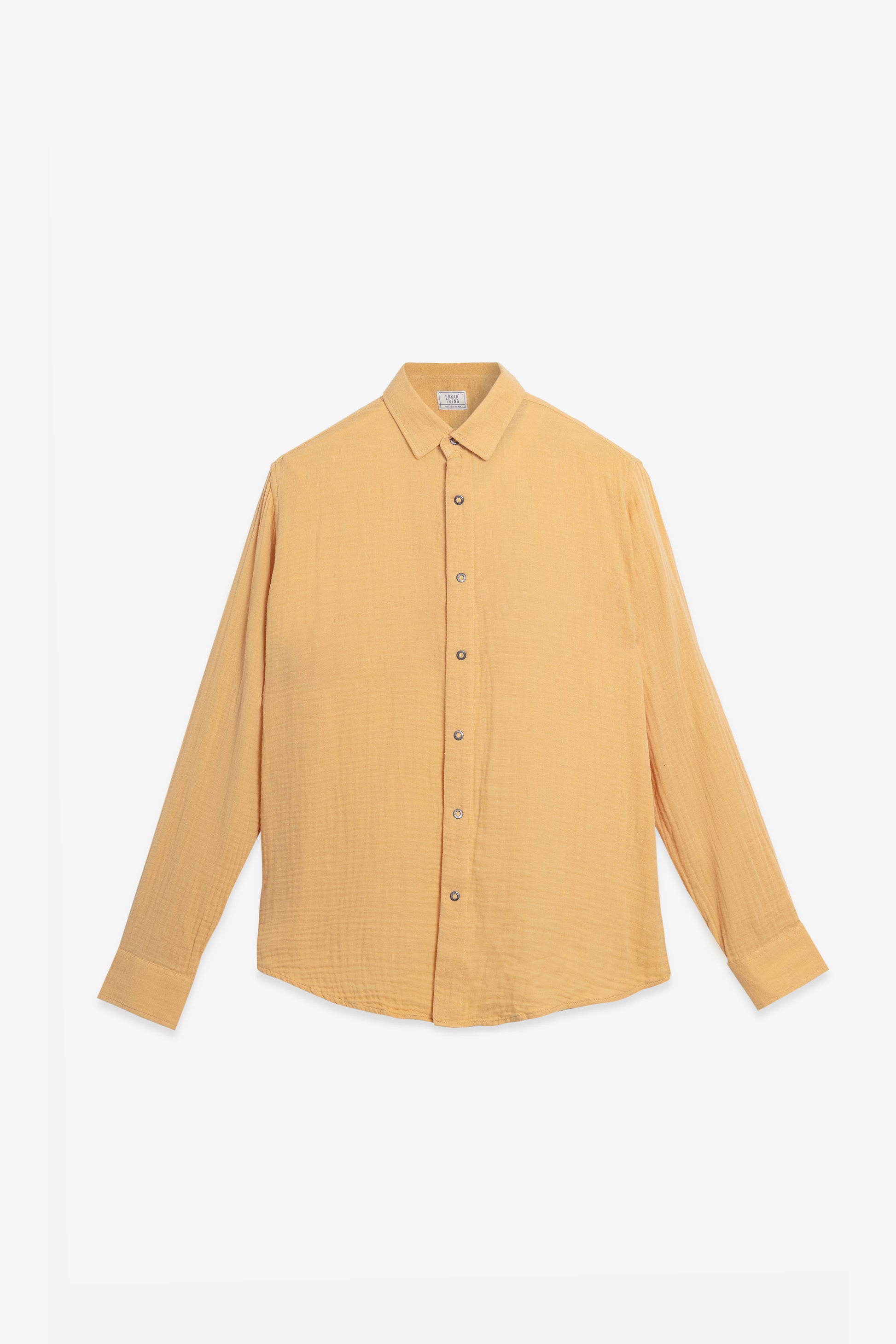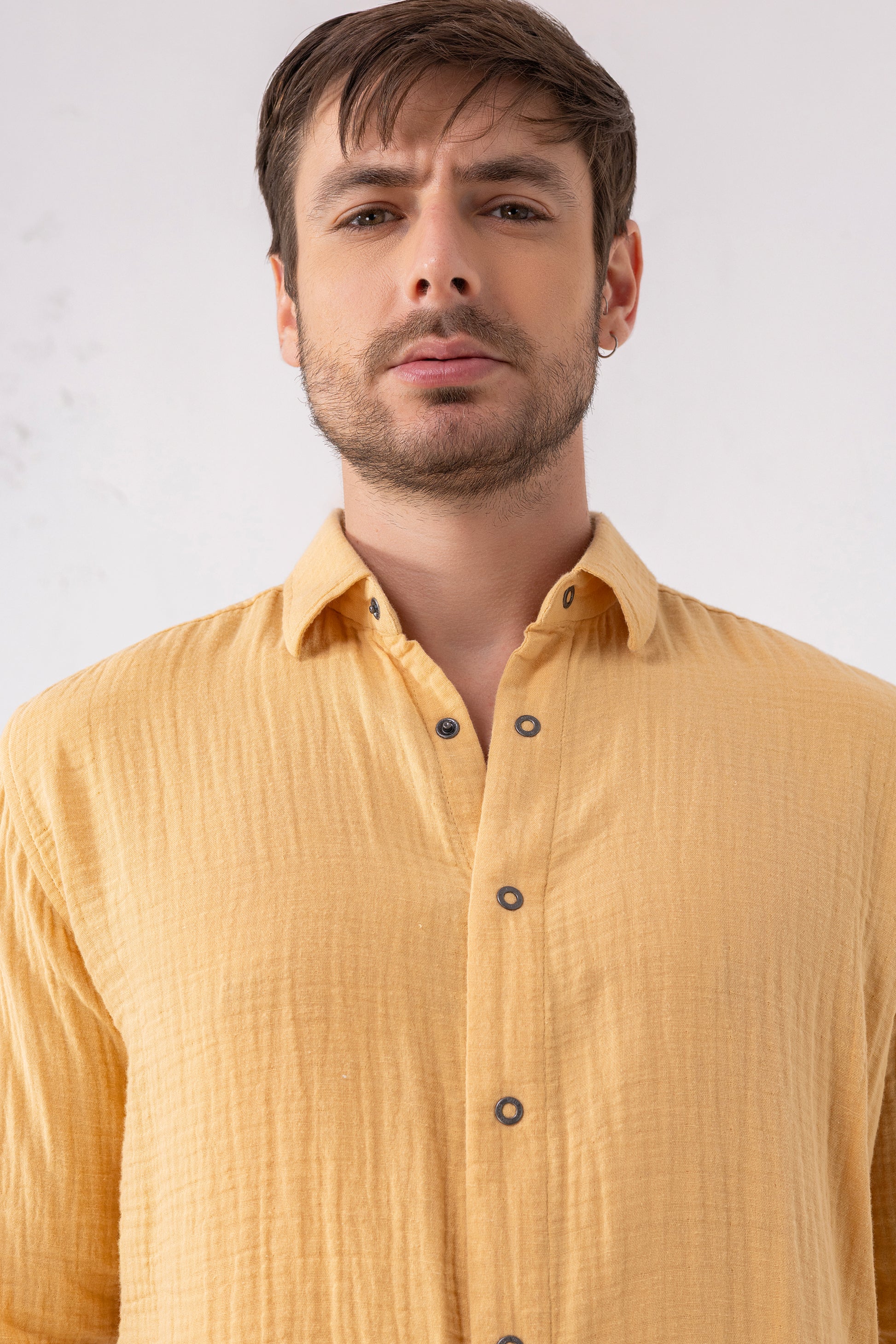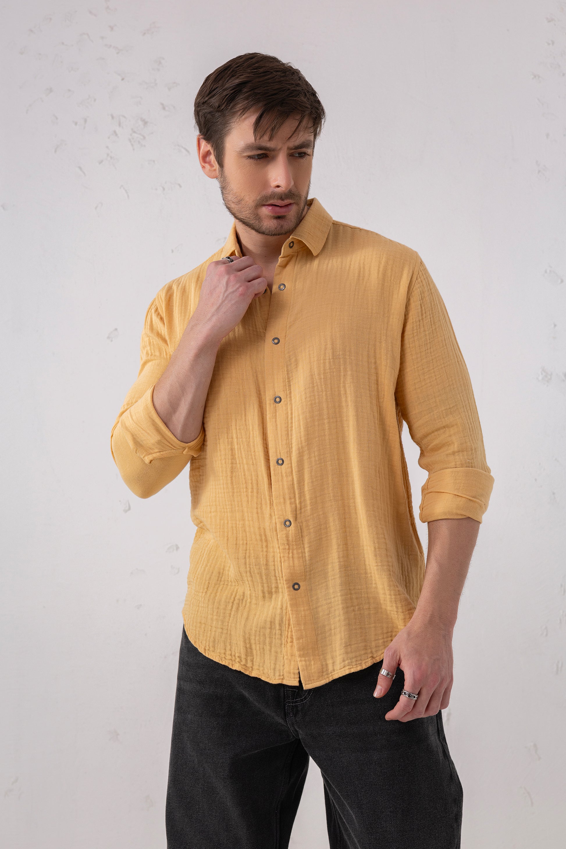 Yellow Mustard Seersucker Shirt – Double-Layer Cotton