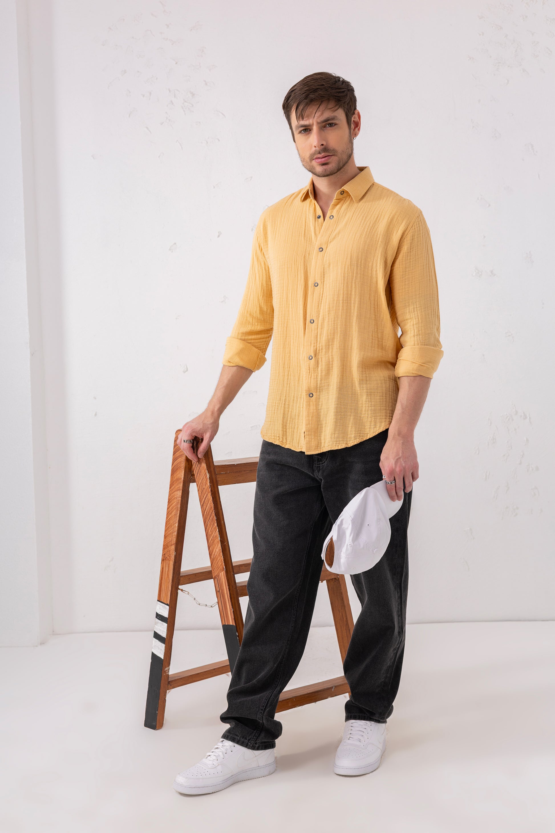 Make a confident entrance with the Yellow Mustard Seersucker Shirt — where vibrant color meets comfort-driven design. Crafted from 100% premium double-layer cotton, its lightweight texture and lively hue are perfect for upbeat social evenings. With its full sleeves and easygoing elegance, this shirt is for the young, the outgoing, and the bold at heart.