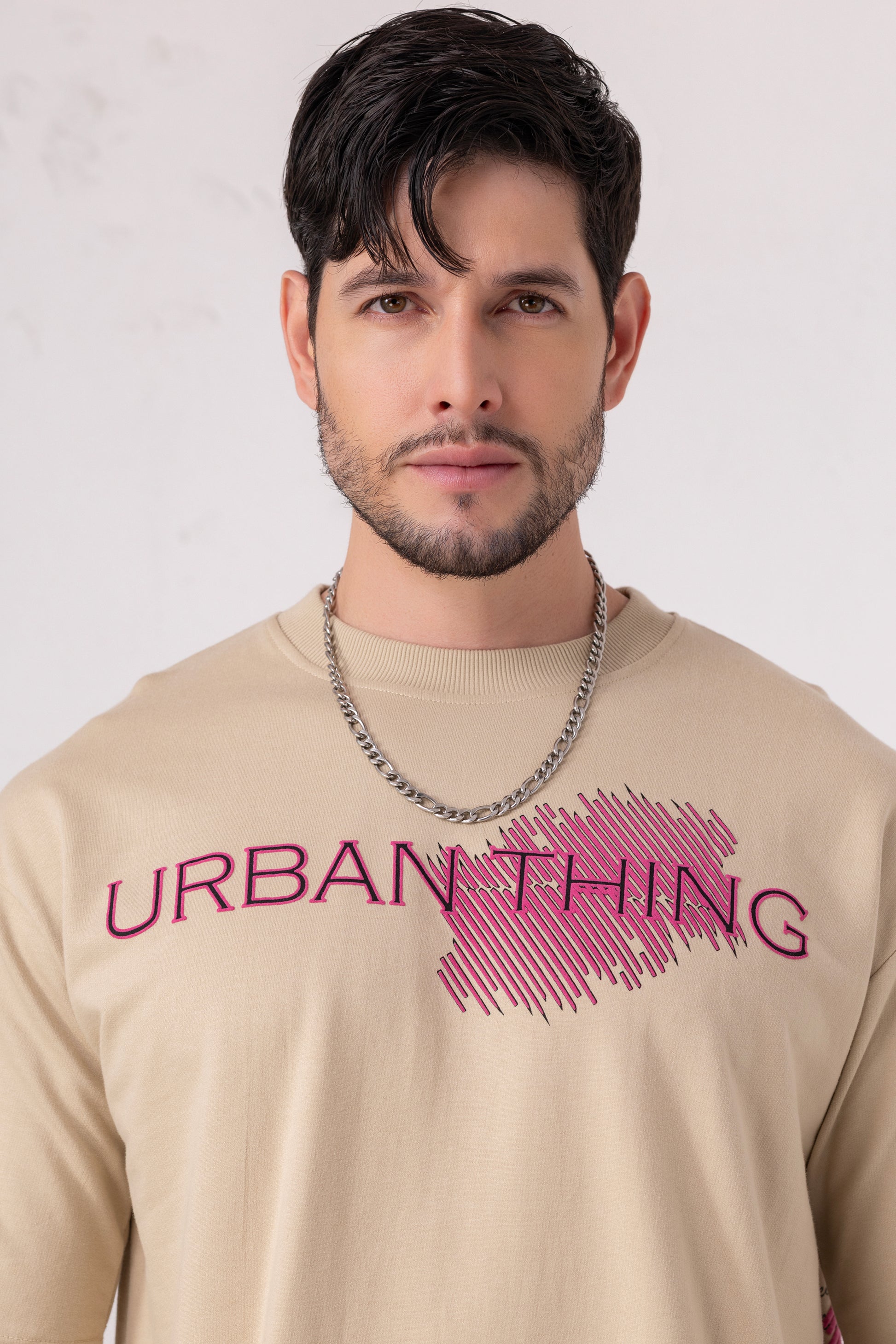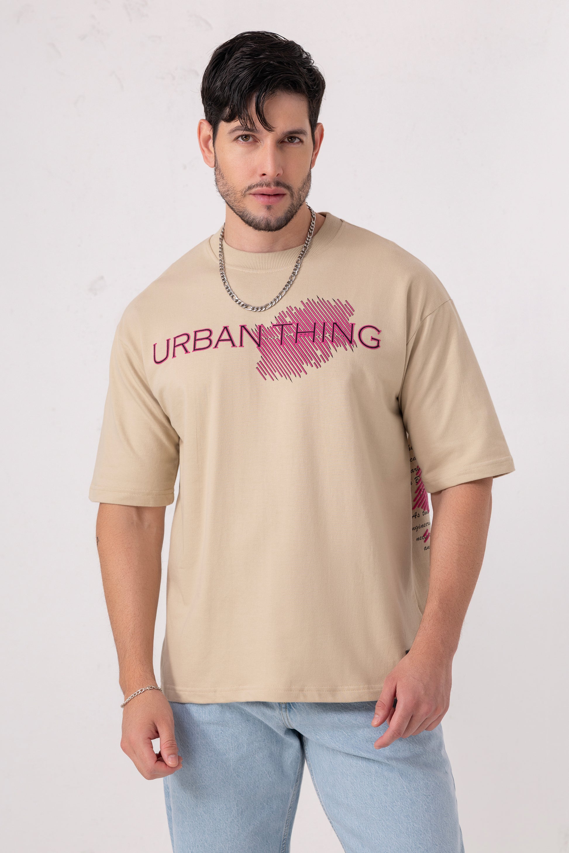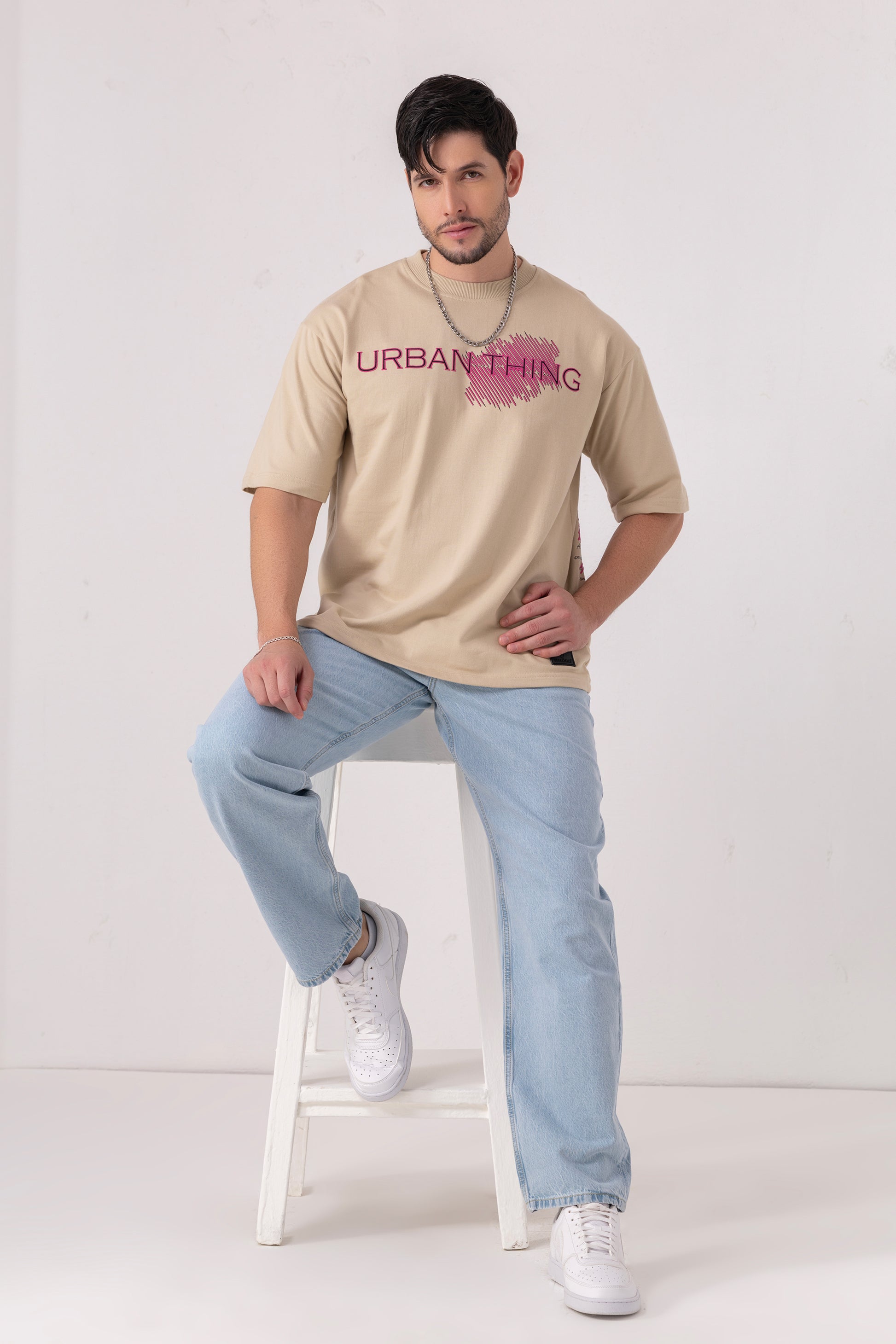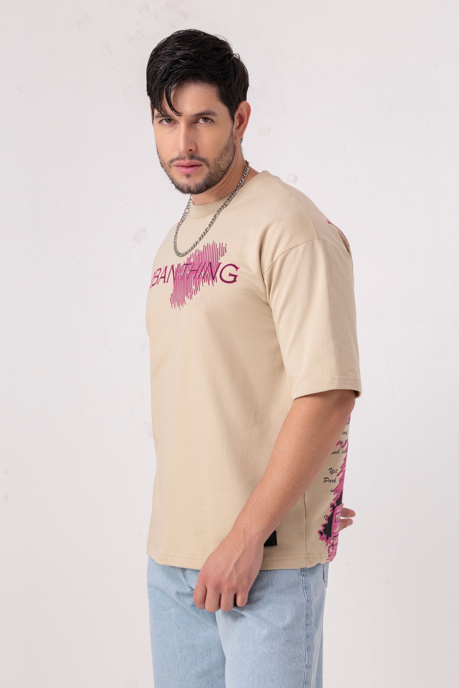 Pair it with relaxed denims or cargo joggers for a street-smart edge. Throw on a crossbody bag and sneakers for an elevated casual look. The neutral beige tone keeps it versatile while the bold back graphic turns heads from every angle.
