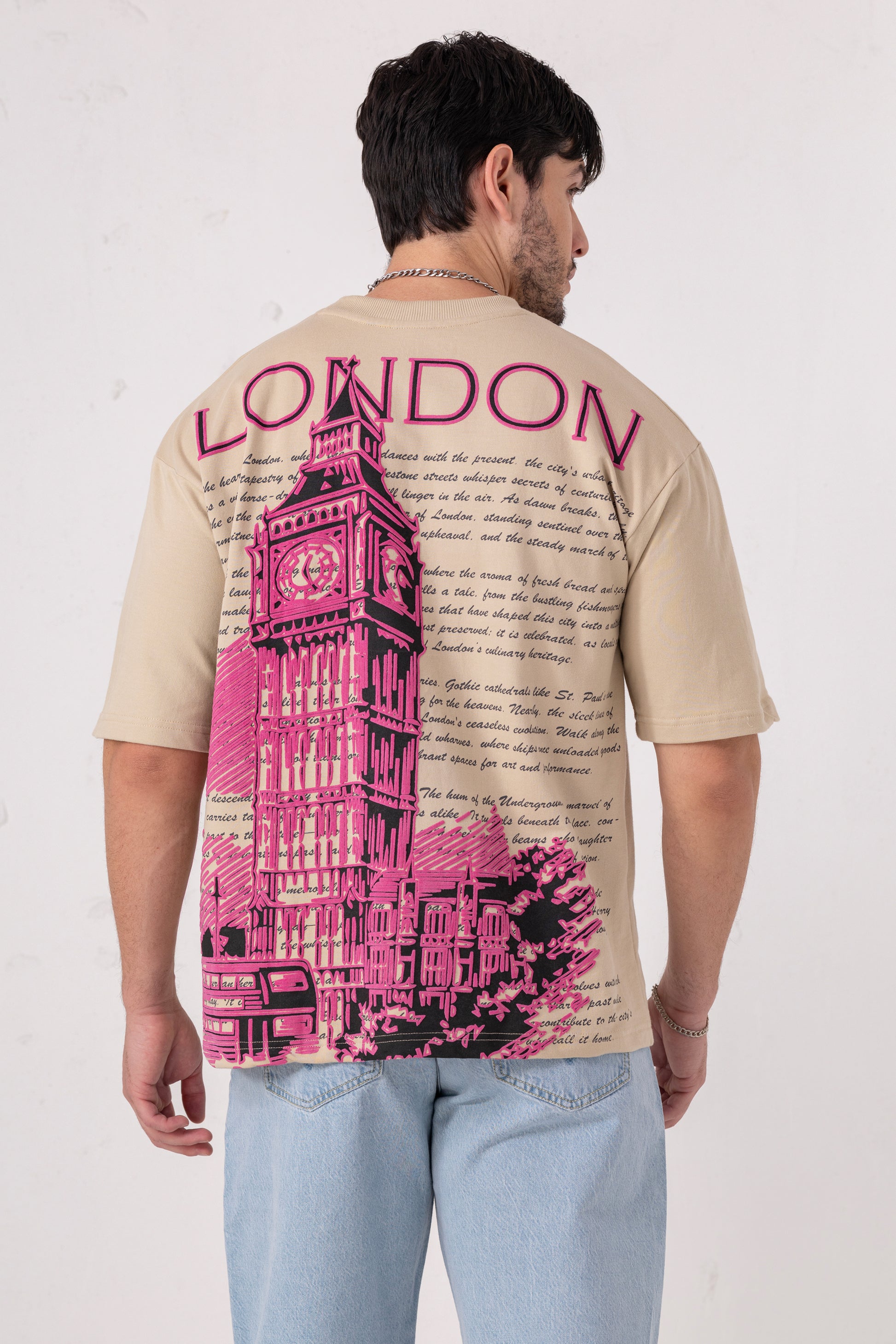 Make every second count in this beige oversize tee featuring a bold “Live the Moment” message on the front and an artistic Big Ben print on the back. Designed in ultra-soft French Terry cotton for comfort that lasts all day.