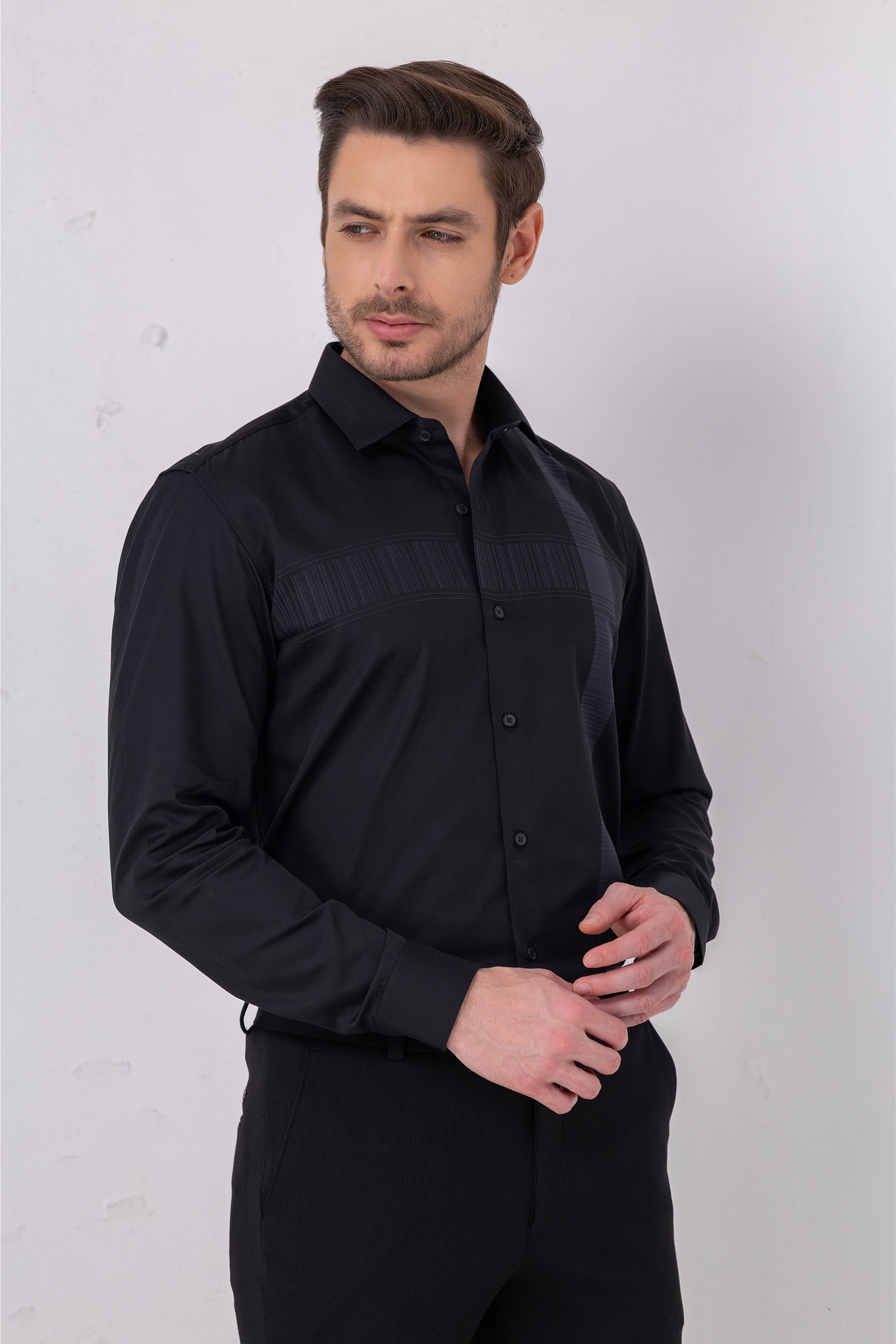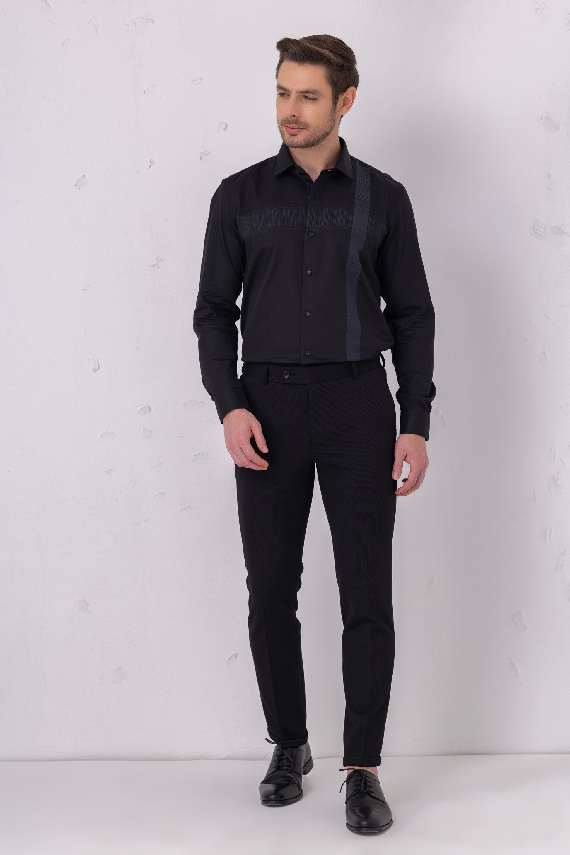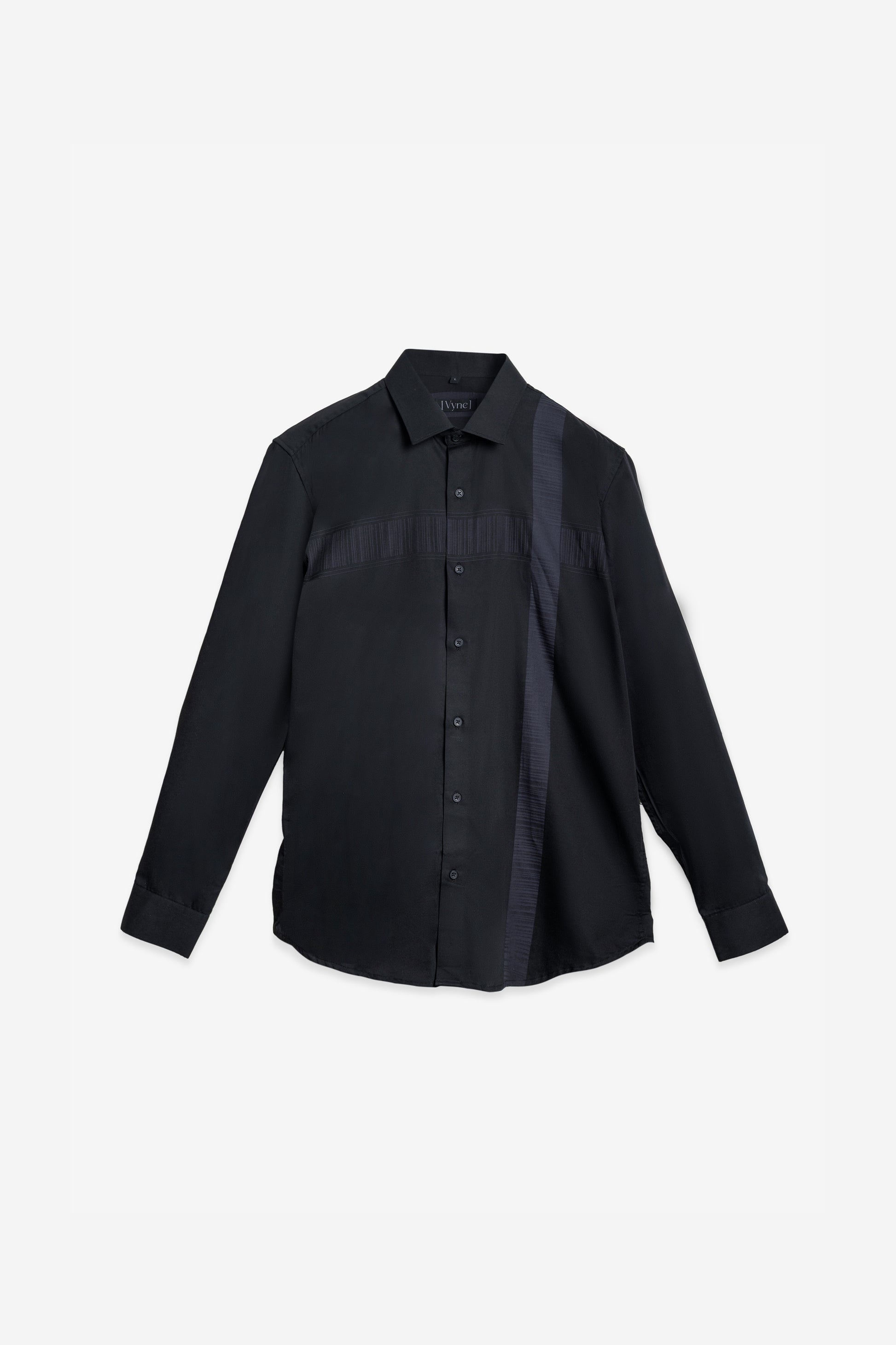 Textured Sophistication - Black Flat Weave Panel Shirt. Vyne by Urban Thing.