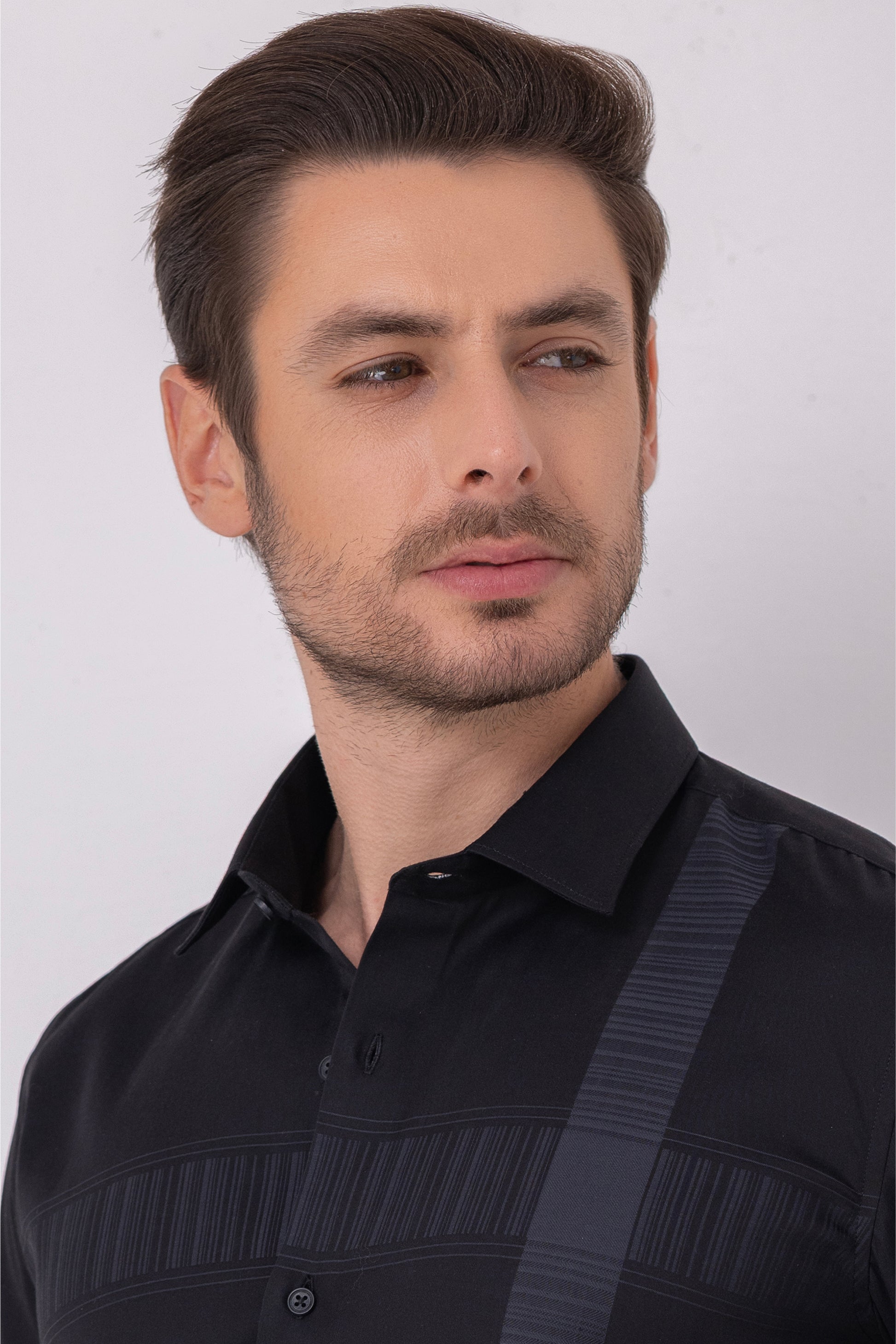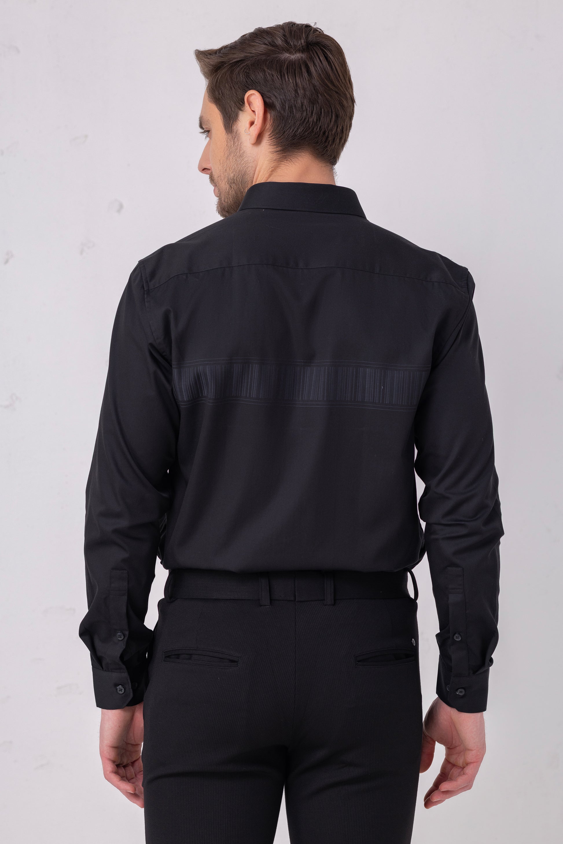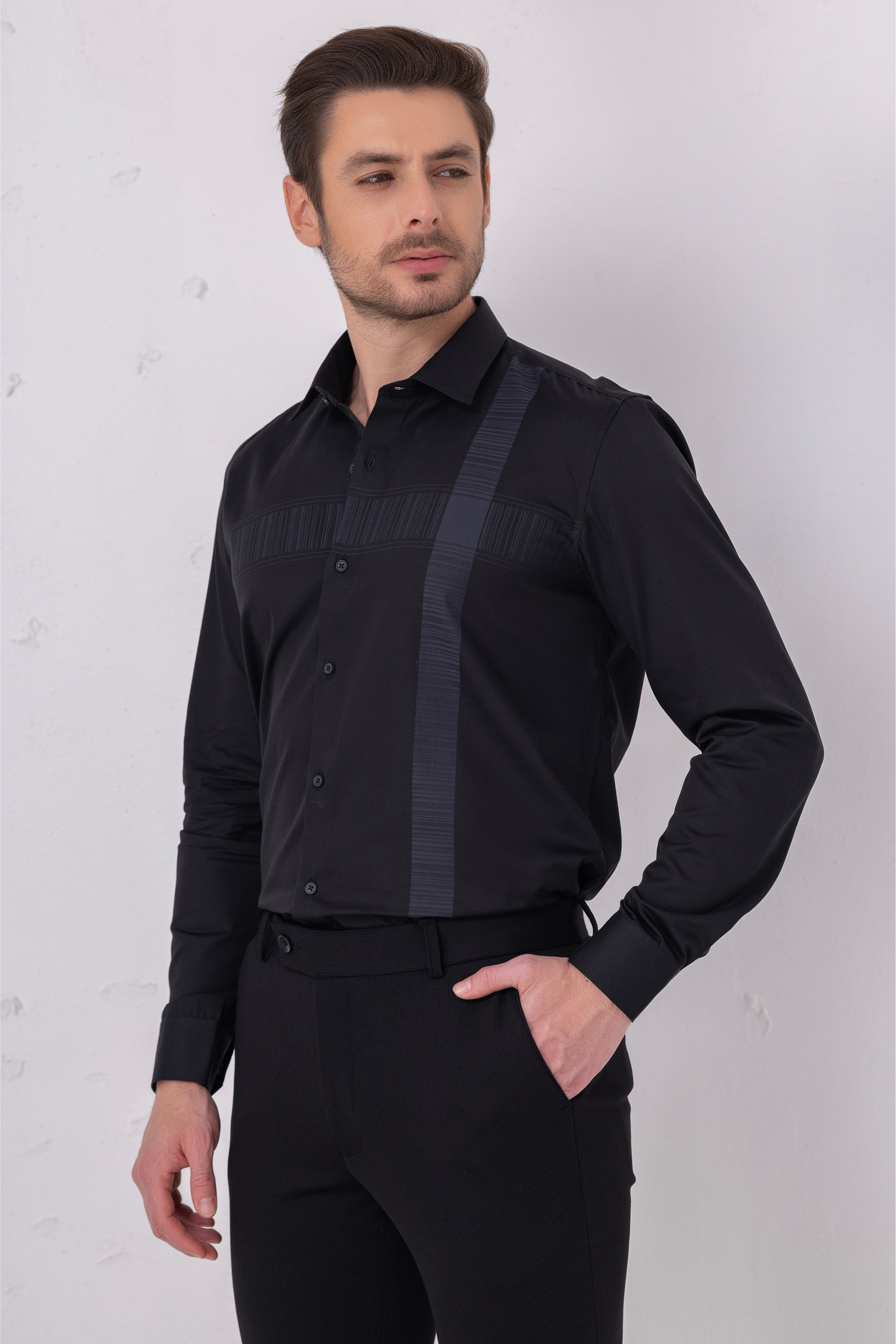 Textured Sophistication - Black Flat Weave Panel Shirt. Vyne by Urban Thing.